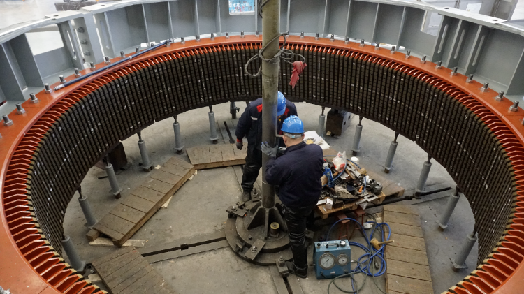天发水电各车间机器轰鸣、焊花闪烁。一车间为保障北京密云白河电站抽水蓄能项目一号机组导水部套的现场装配进度,职工全程坚守生产岗位,紧盯工序衔接,操作人员全神贯注监控设备运行状态,作业流程节奏分明、有条不紊;二车间面对彻底清除固化绝缘材料及严控制造公差精度双重刚性约束,车间党支部牵头组建“党员攻坚团队”,团队积极创新加工工艺,开展精细化排产,昼夜连续奋战,全力保障山秀磁极线圈按期交付;在三车间,哈电60万火电定子机座铆焊任务已进入最后冲刺阶段,九峰山底环、别迭里底环、横丹转轮体等铆焊工序也步入关键节点,车间组织专题技术交底会,车间职工主动放弃休假,紧抓生产窗口,全力以赴保障各项任务如期完成。